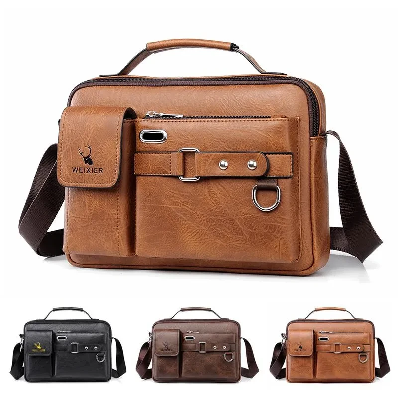 Men’s Messenger Bags Leather Crossbody Bag Waterproof Shoulder Bags Multifunction Briefcase Travel Work Business Handbags Adjustable Strap